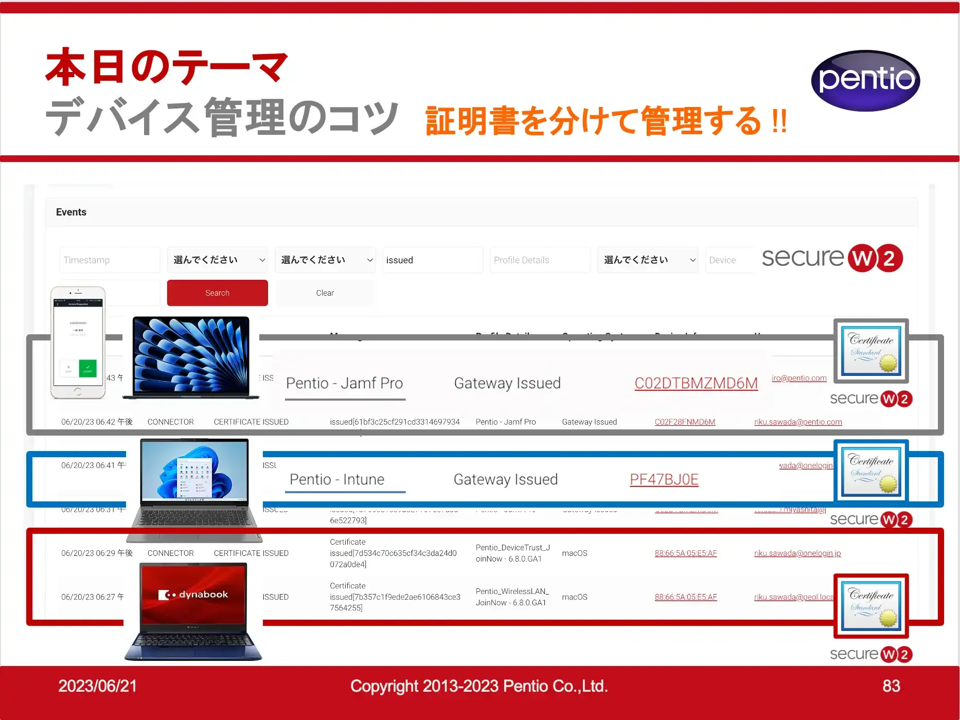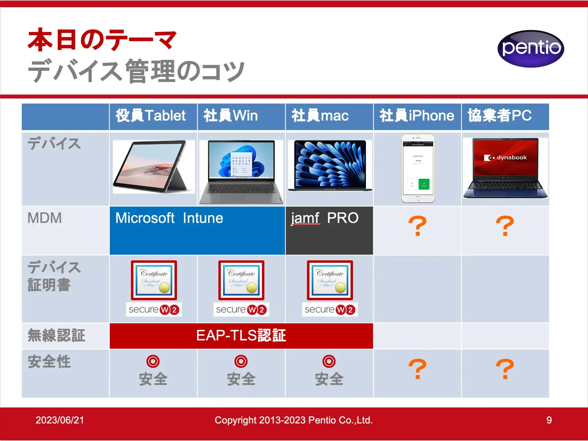 ペンティオ株式会社(本社:東京都千代田区、以下 ペンティオ)は2023年7月12日(水)に、SecureW2オンラインセミナーを開催しました。