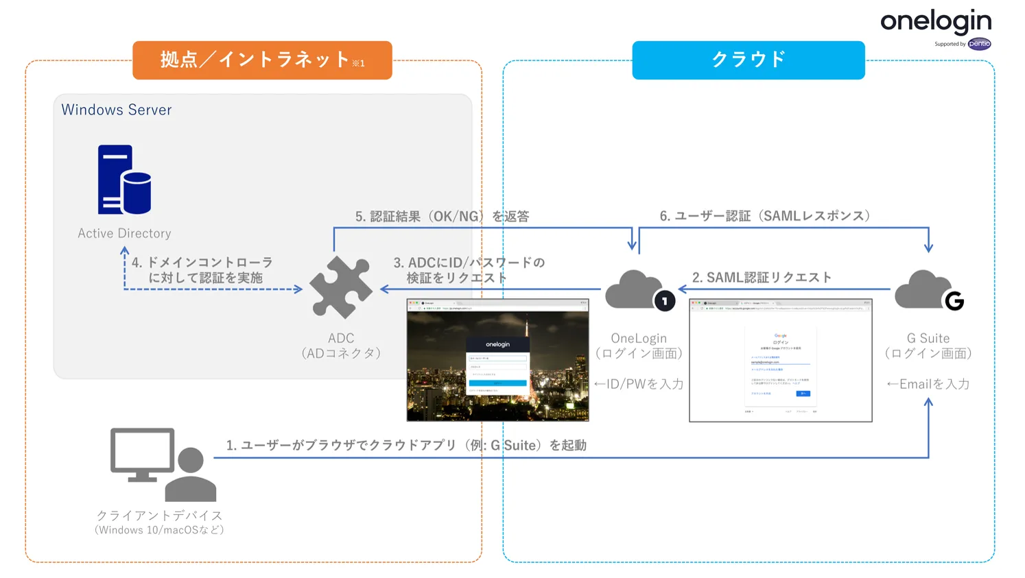 ①【認証】Active Directoryの認証情報を利用したOneLoginへのログイン