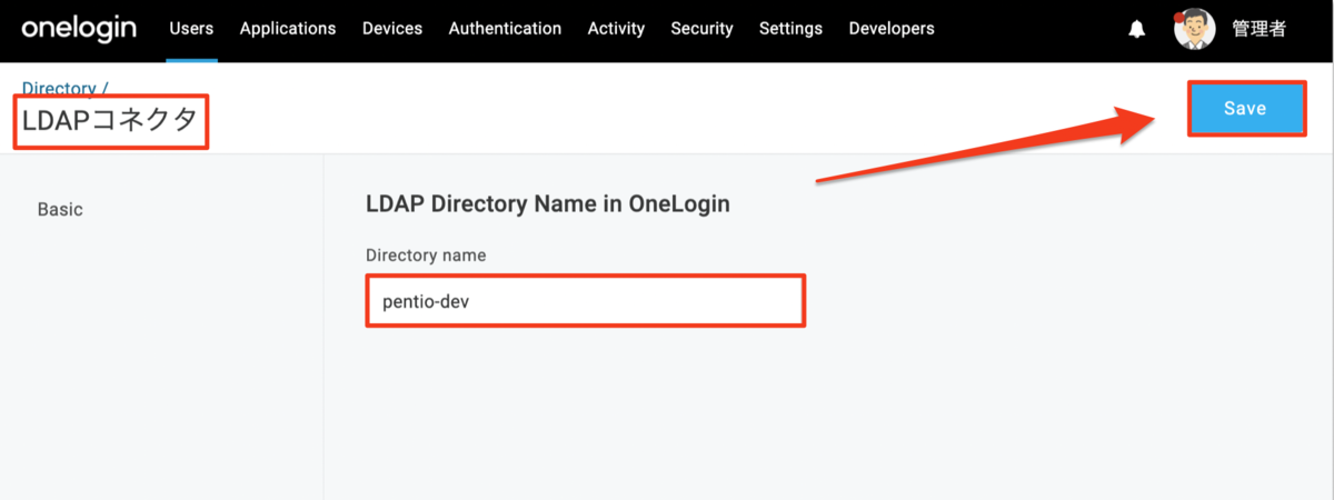 任意のコネクタ名、ディレクトリ名を入力し[Save]をクリックします