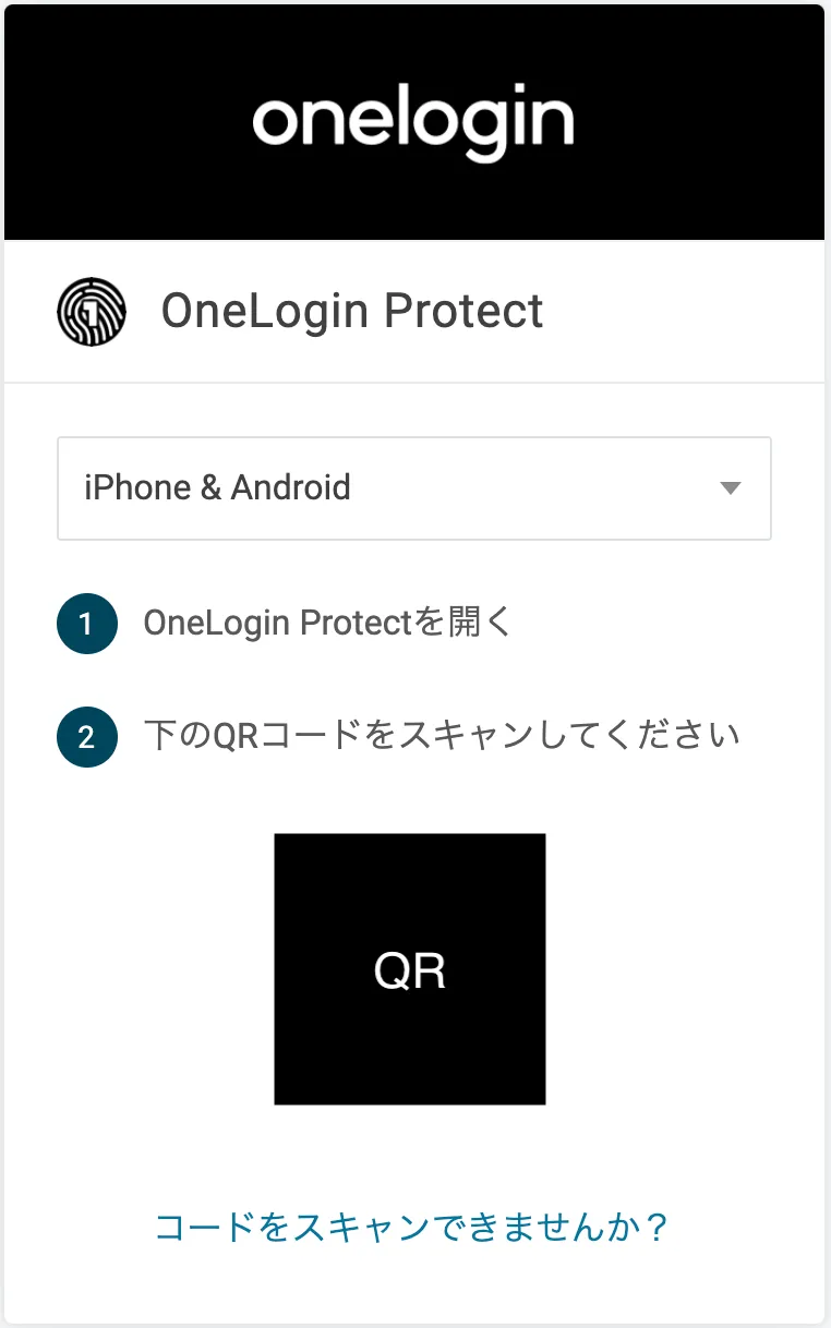 QRコードが表示されますので、OneLogin Protectのアプリケーションから、QRコードを読み取ります