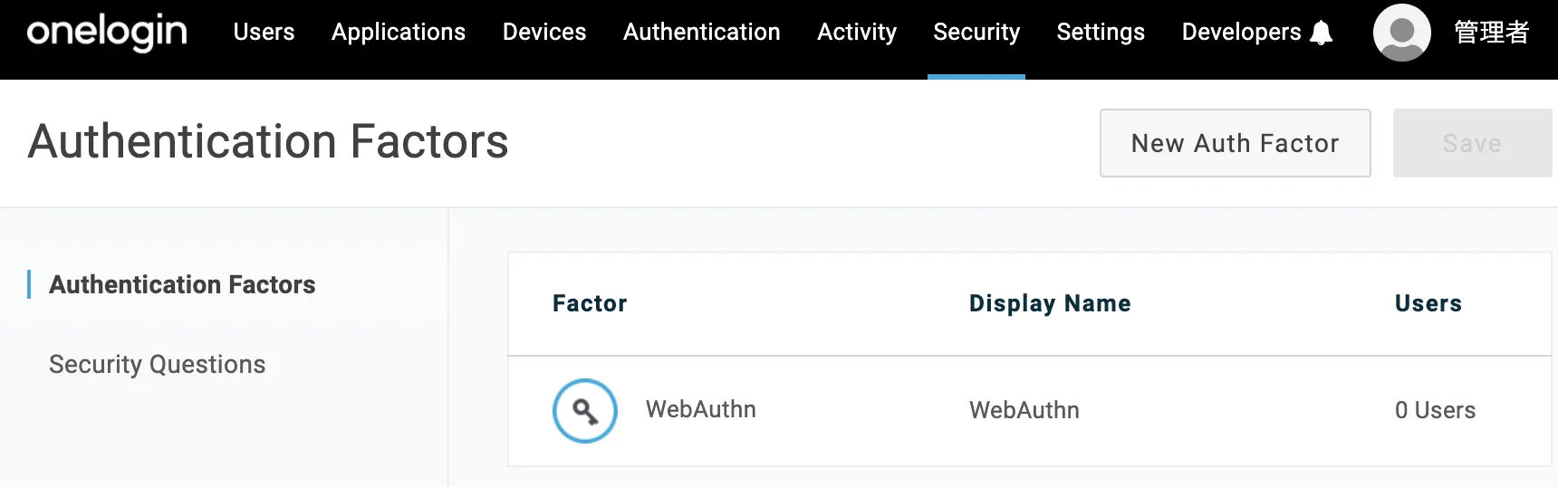はじめにOneLogin管理者がWebAuthnを認証要素として設定していること、OneLogin管理者がポリシーでログイン時にMFAを必須としていることをご確認ください。