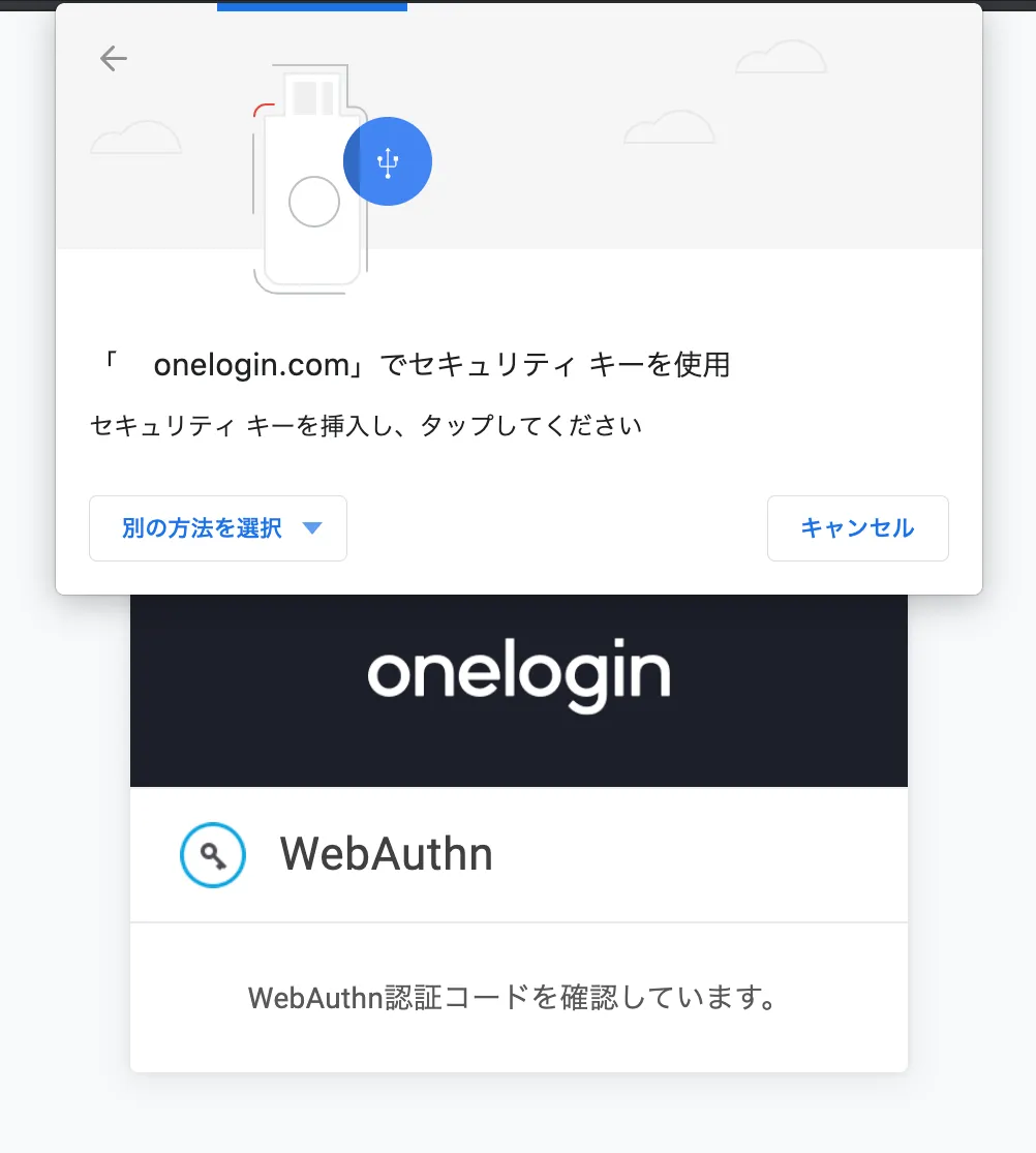 6. WebAuthnのポップアップが表示されます。YubiKeyを使うので、「USBセキュリティ キー」を選択します。