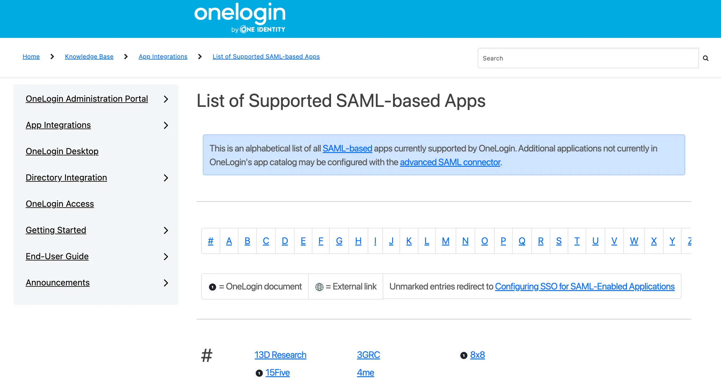 お使いのサービスがOneLoginのアプリカタログに掲載されているかを確認できます。掲載されている場合、対応している認証方式についてもご回答を差し上げます。