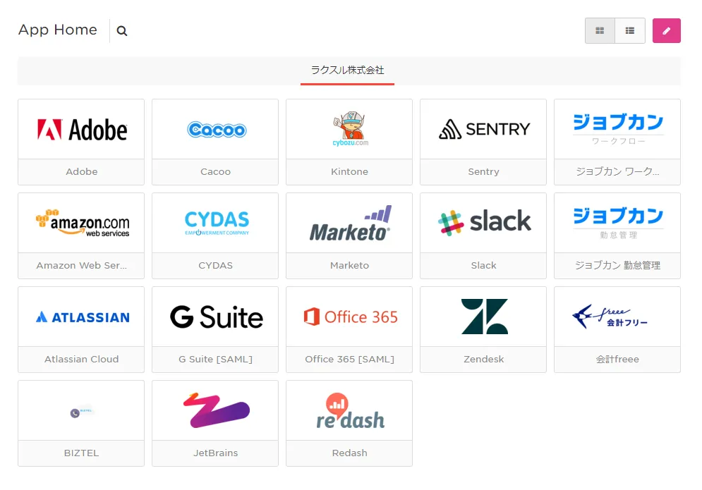 SAML認証アプリはG Suite, Re:dashを利用しています。今後はAttlasian Jira, Attlasian Confluence, Microsoft Office 365などもSAML認証で利用していく予定です。Cybozu kintoneやZendeskは現在Form-base認証で利用していますが、いずれはSAML認証に切り替えすることを検討しています。 Provisioningを利用しているG Suiteは別のルートからのProvisioningですが、OneLogin経由に切り替えるか検討中です。利用アプリはこんな感じです。【ポータル画面】(北内)