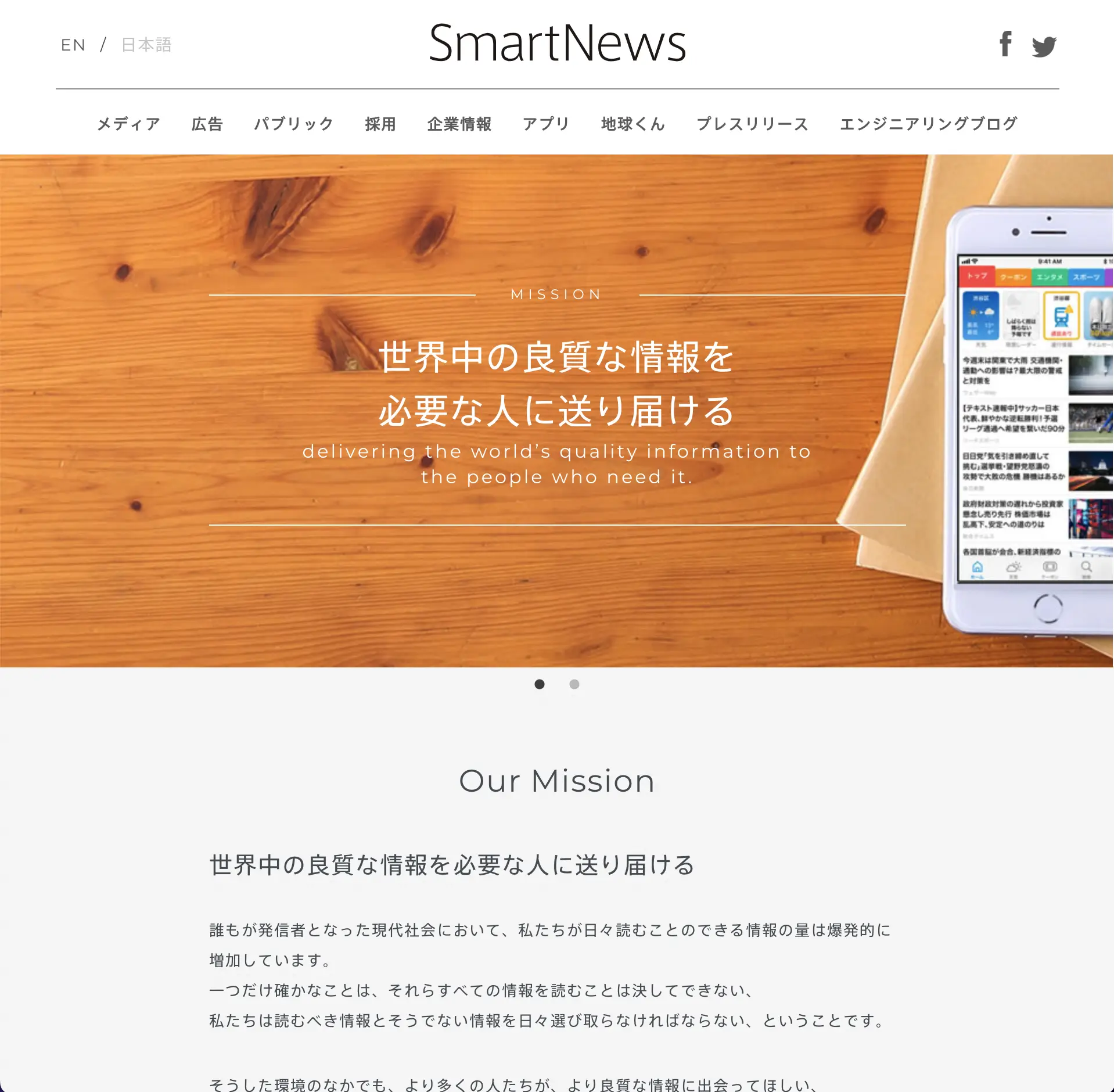 スマートニュース株式会社は、「世界中の良質な情報を必要な人に送り届ける」をミッションに掲げ、2012年6月15日に設立されました。
