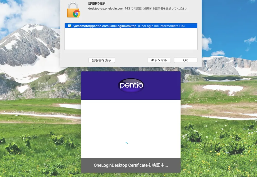 Desktopは、証明書によるOneLoginポータルへのSSOを行うOneLogin