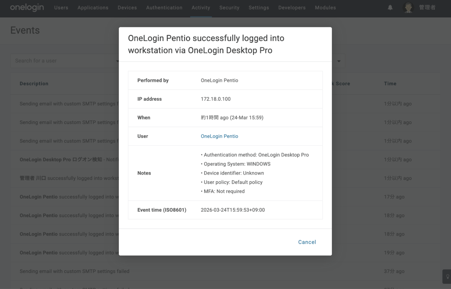- OneLogin Desktop Pro を用いたOSログオン時のイベントログが新たに追加