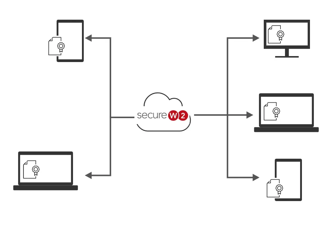 マネージドPKIとは、証明書の発行・更新・失効を含むPKI全体を管理するためのサービスのことです。SecureW2が提供するマネージドPKIはクラウドでホストされたサービスなので、オフィスに物理的なPKIを構築する必要がありません。SecureW2のマネージドPKIには以下のような特徴があります。
