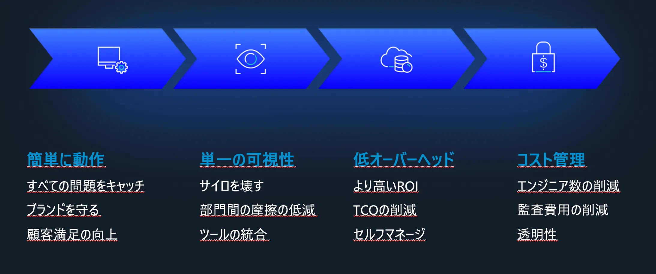 - 競合他社に比べ、ROIが高く、TCOが低いことが証明されているため、障害を迅速に解決できます。MTTIとMTTRを50%以上大幅に削減することで、コスト管理を支援します