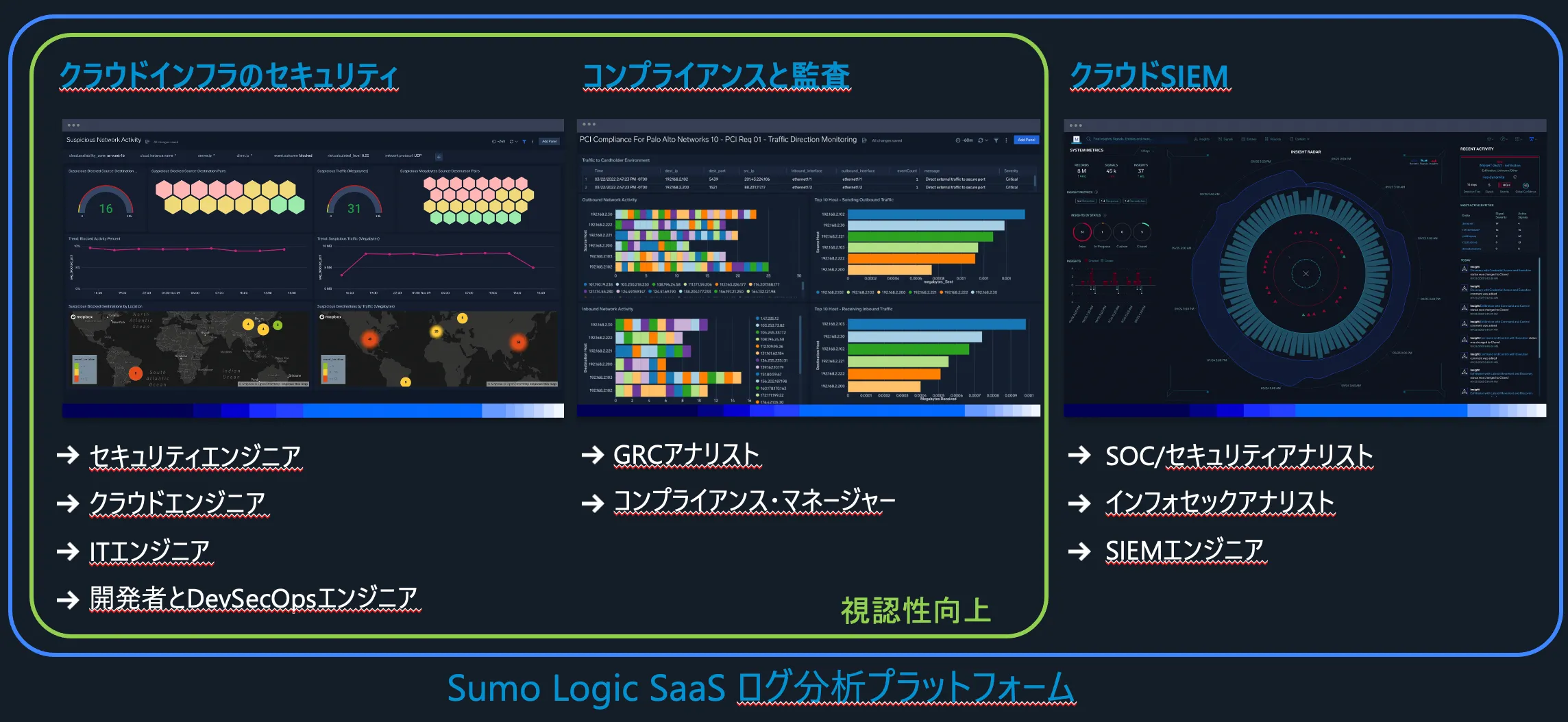 Sumo Logicは、お客様のセキュリティのユースケースに対応するために、実務者に特化した機能を備えたあらゆるソリューションを提供しています。それぞれについて説明します。