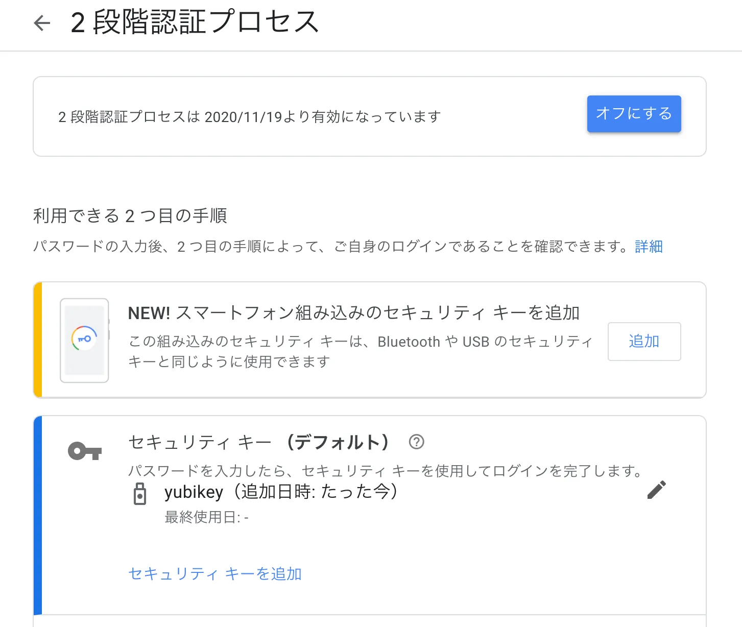 FIDO U2Fを利用するGoogleアカウント認証への登録方法