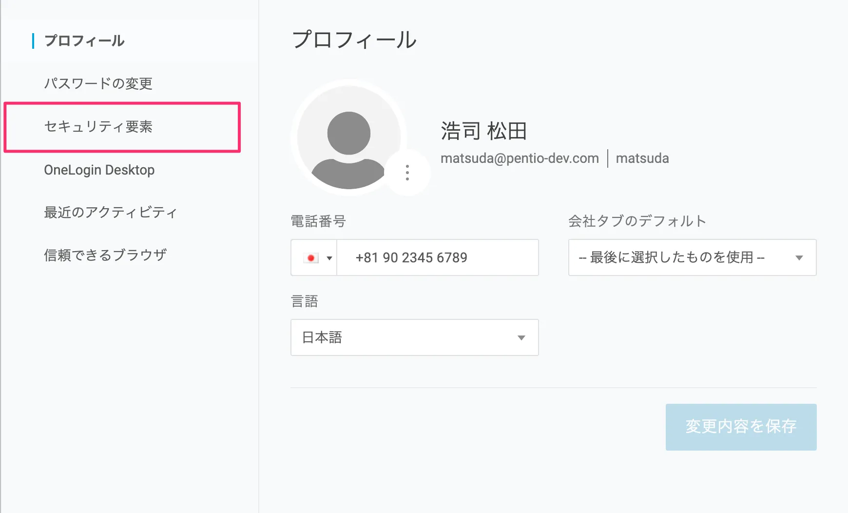 - OneLoginアカウントにログイン後、右上のユーザーアイコンからプロフィールへ移動します