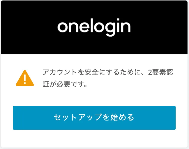 - 次のような表示が出た場合、2要素認証の設定が必要となりますので、「セットアップを始める」をクリックします(この画面は、管理者がOTP認証を必須に設定している場合に表示されます)