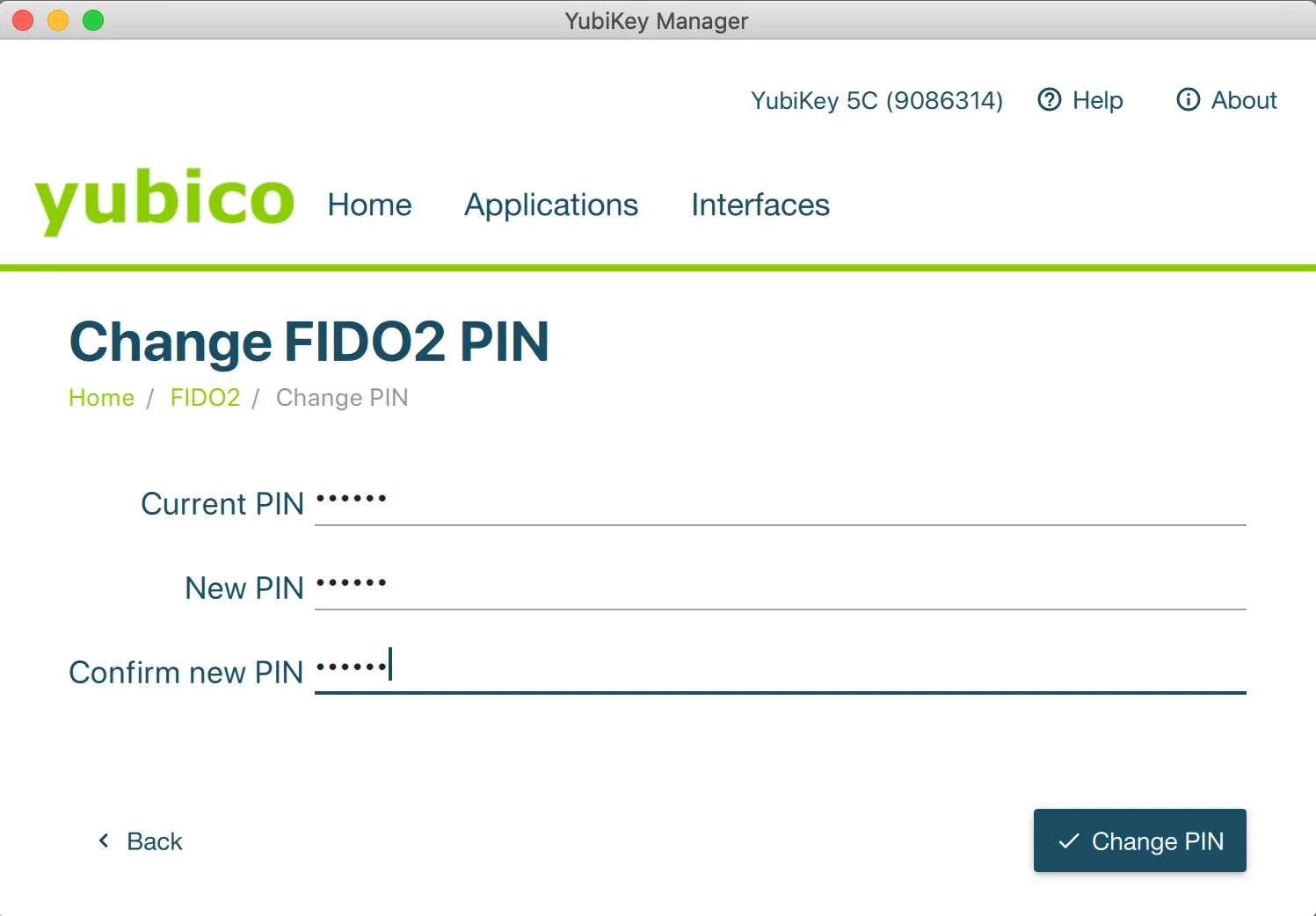 > ykman fido set-pin -P123456 -n135791
