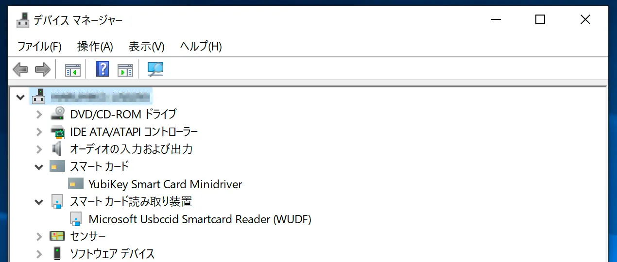のインストールが必要です。Minidriverは下記のリンクからダウンロードできます。ドライバインストール後、デバイスマネージャーでPC接続周辺機器をみるとYubiKeyはスマートカードとして認識されます。